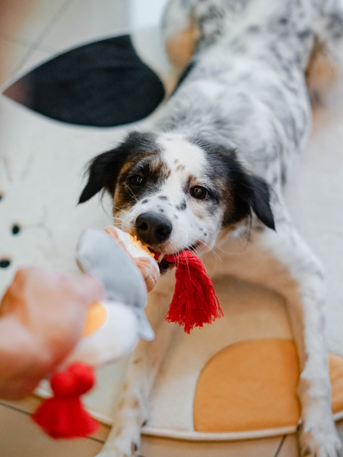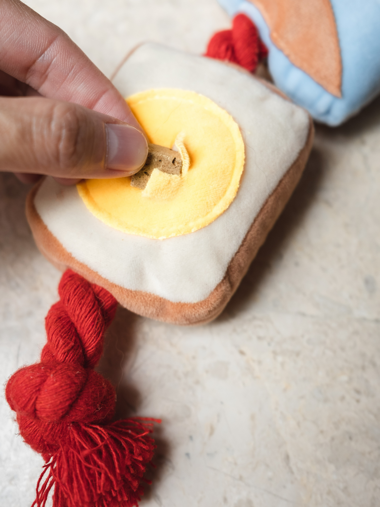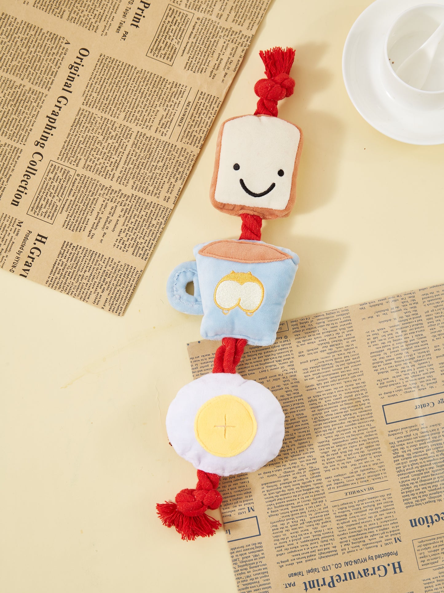 So whether you want to keep your dog entertained while you're busy, reward them for good behavior, or just snuggle up with them and their new favorite toy, our Dog Tug Toy with plush bread, coffee, and egg toys is the perfect choice for you and your furry friend.