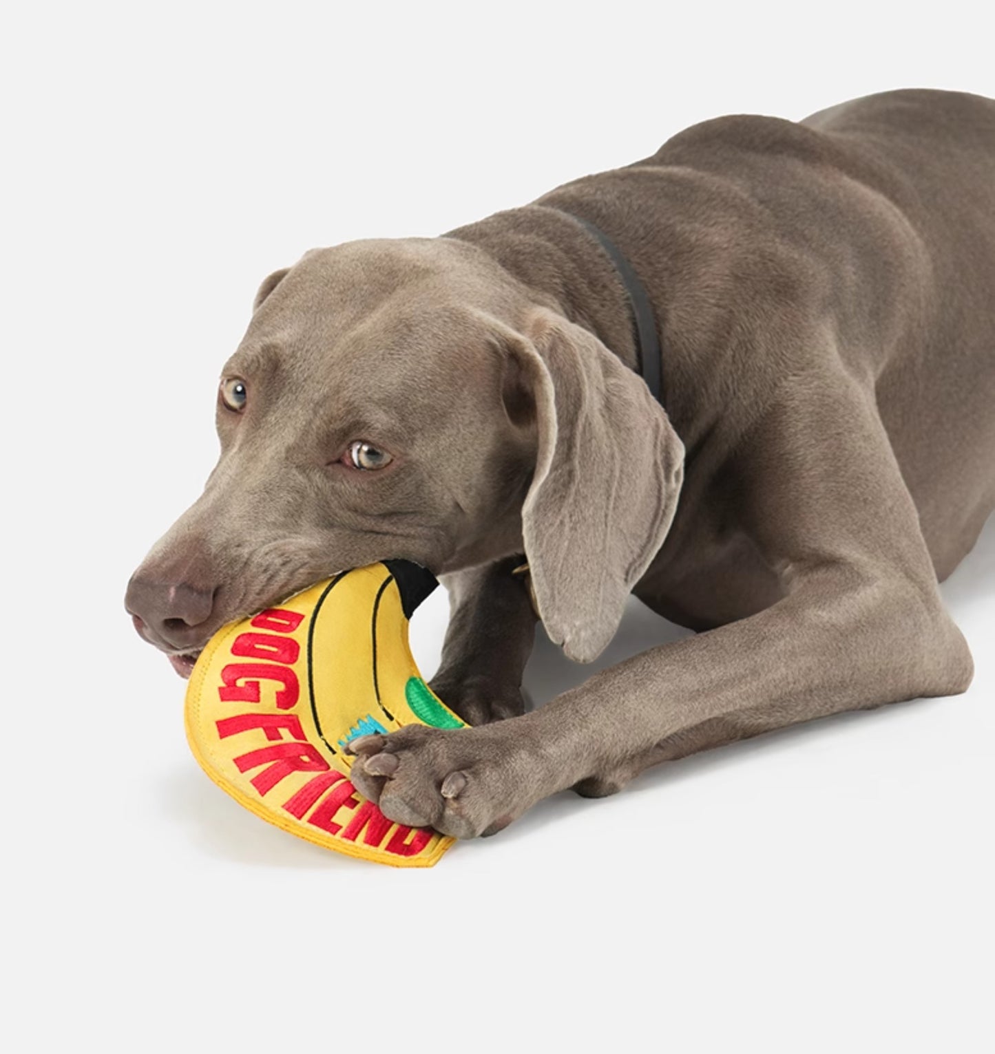 Unleash the fun with our Dog Friend Banana Frisbess! Perfect for fetch, this frisbee packs a squeaky surprise that will keep your pup entertained for hours. No more boring playtime, it's time to add a little extra 'ruff' to your dog's day! (Dog not included.)